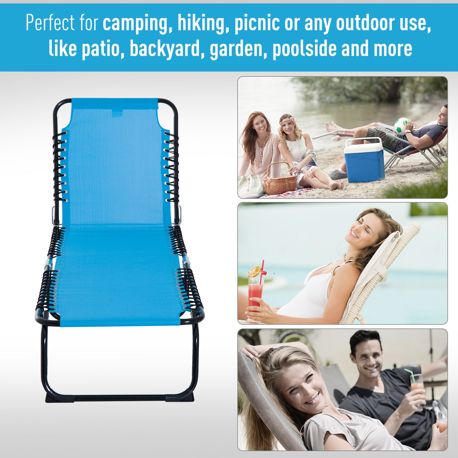 Create instant comfort anywhere with the Outsunny folding lounge chair. Designed with a 4-position adjustable backrest and 2 footrest positions, it lets you relax your way—sunbathing, reading, or napping. The lightweight, fast-folding design makes it easy to carry to the patio, poolside, beach, or campsite.